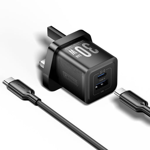 Vention 2-Port USB (C + A) GaN Charger (30W/30W) with USB-C to USB- C Cable (1M) TZ-FEQW0-UK-01